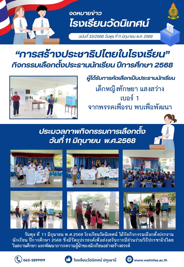 ประชุมครูเดือนมิถุนายนเลือกตั้งประธานนักเรียน