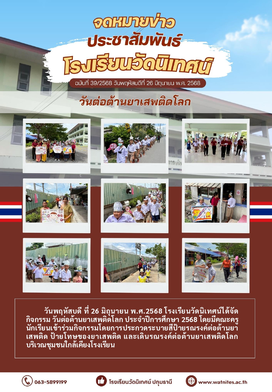 นักเรียนเดินรณรงค์ต่อต้านยาเสพติด